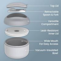 - Utensilios: Incluye un set de cuchara y tenedor que se guardan dentro del compartimento superior.