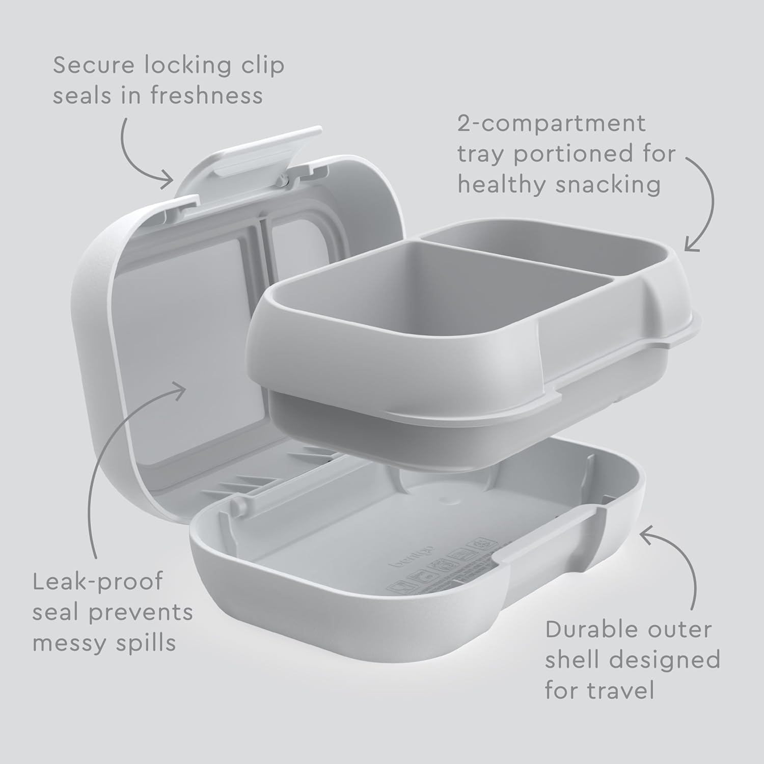 • Dos Compartimentos: Cuenta con una división inteligente (1 taza y ½ taza) que permite separar, por ejemplo, frutas jugosas de galletas crujientes sin que se mezclen.