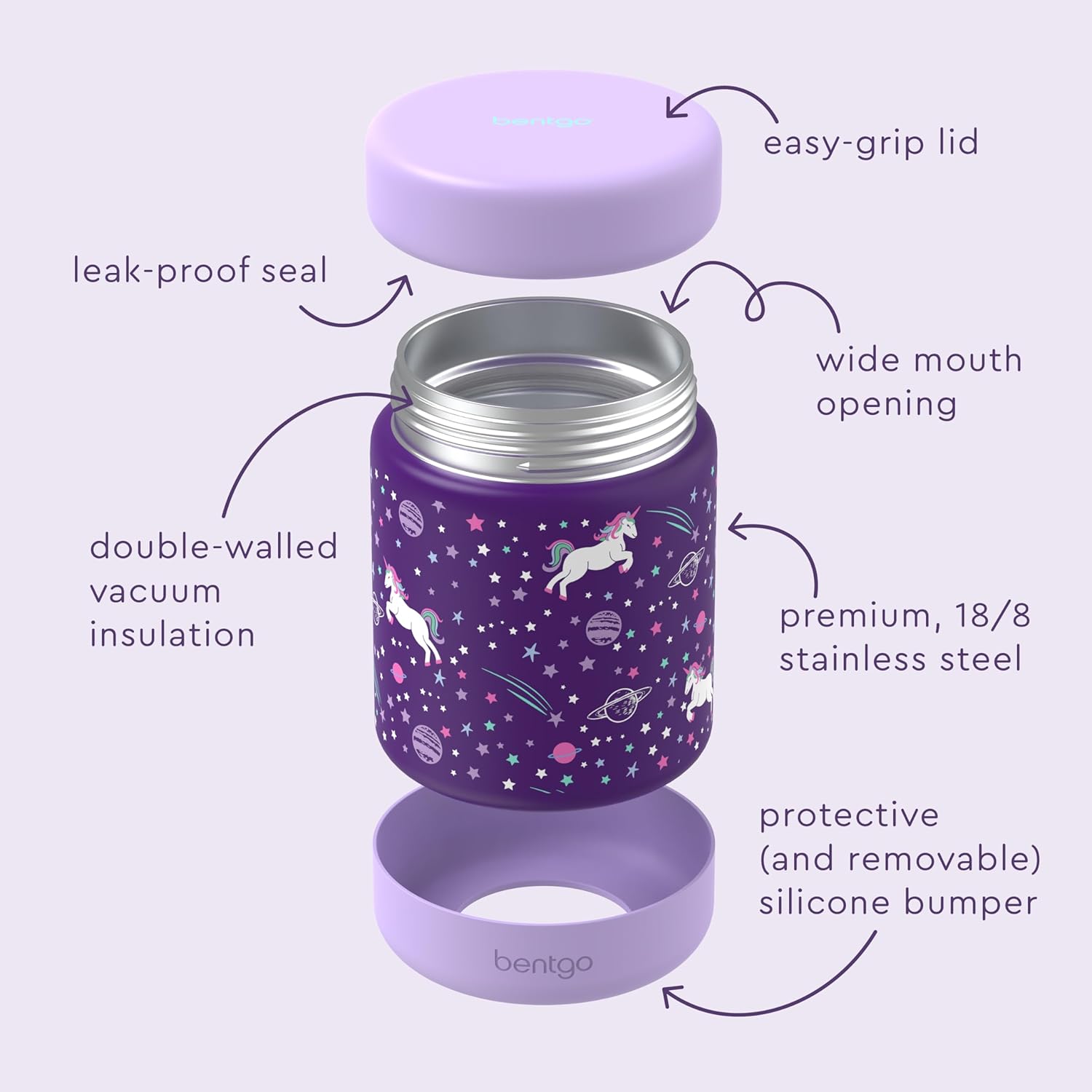 Contenedor Bentgo de acero inoxidable para niñas, Unicornios