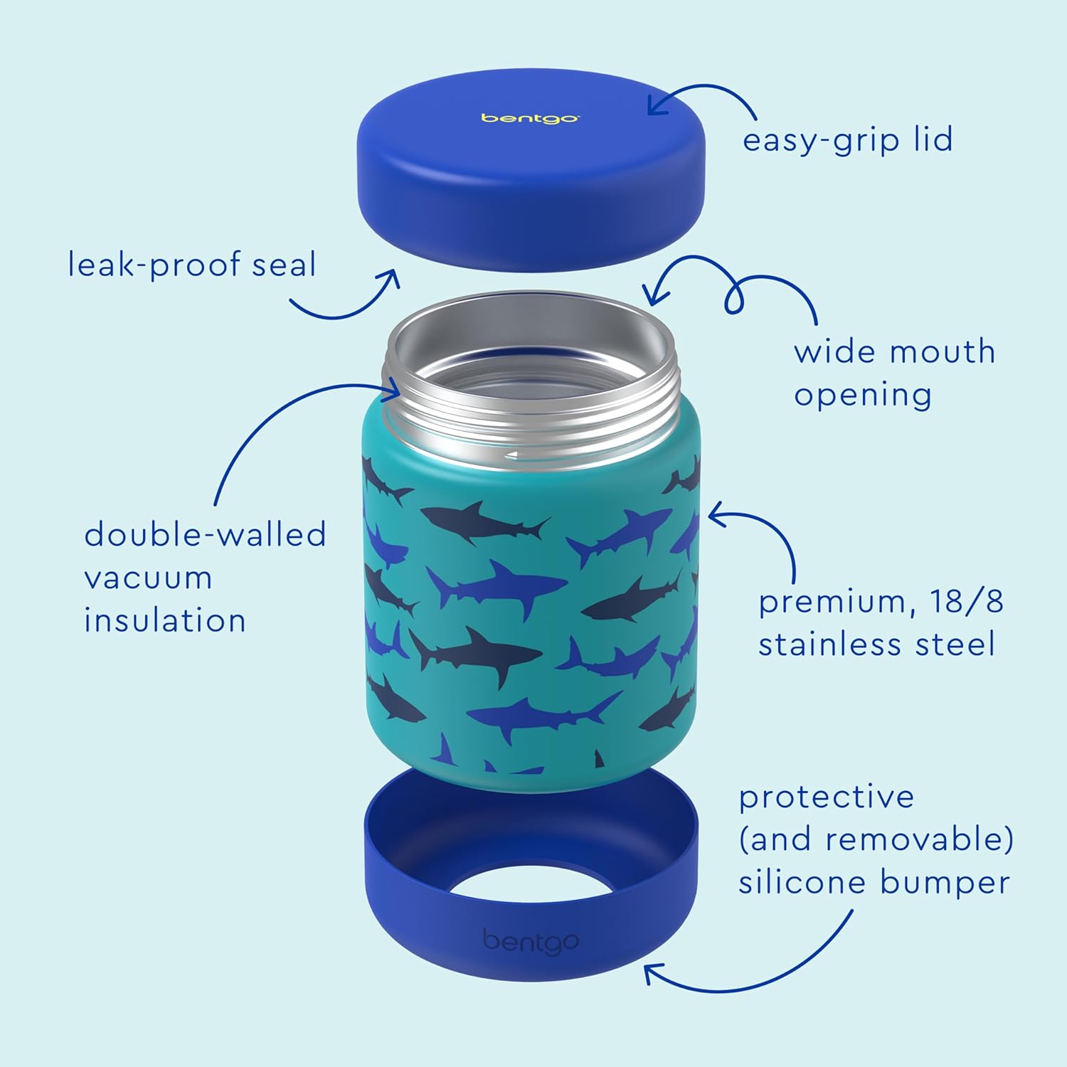 Contenedor Bentgo de acero inoxidable para niños, Tiburón