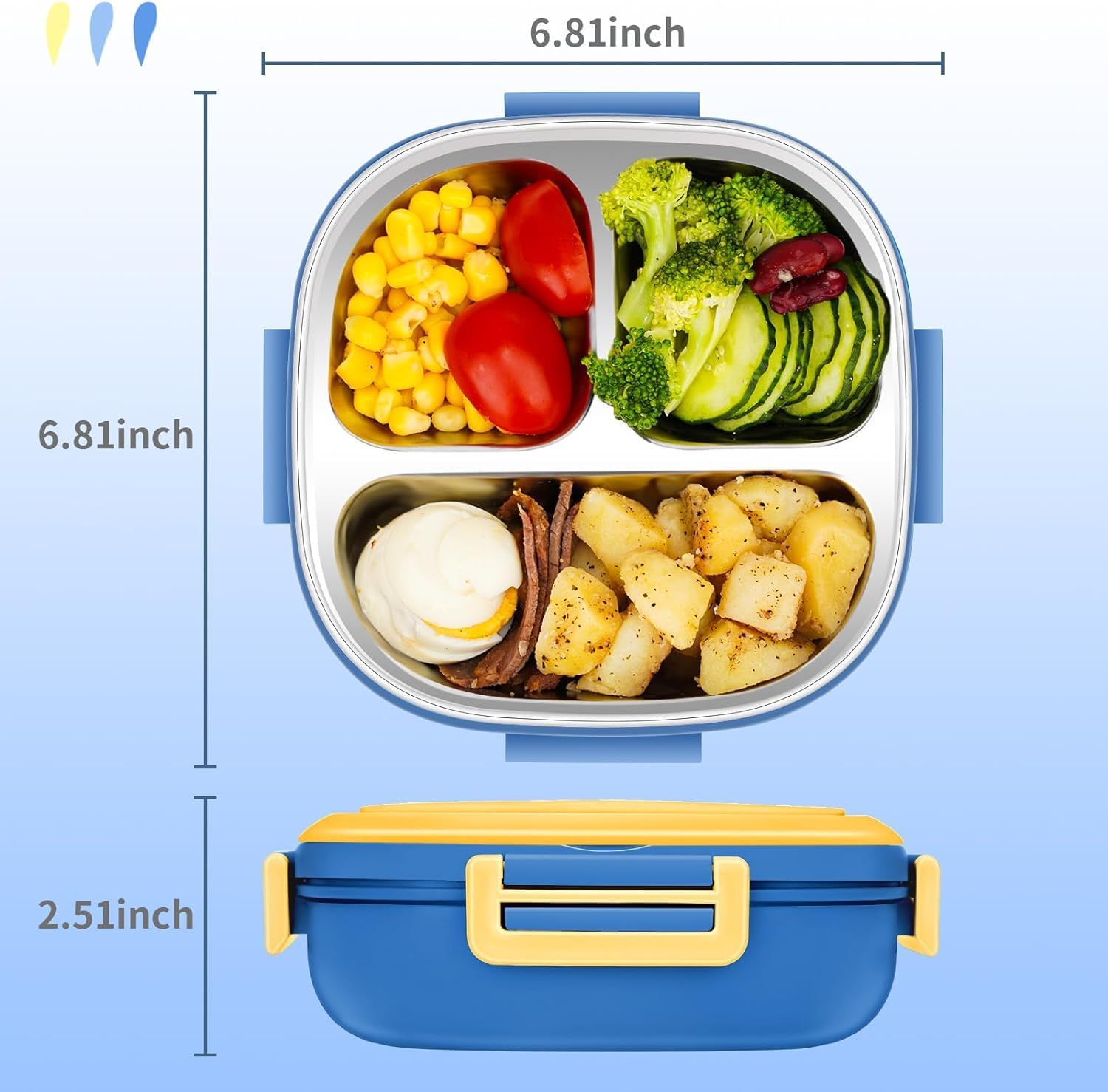 Equipada con un sistema de cierre de cuatro hebillas laterales y un sello de silicona integrado. Este diseño garantiza que la lonchera sea 100% a prueba de fugas, manteniendo los alimentos sellados y frescos.
