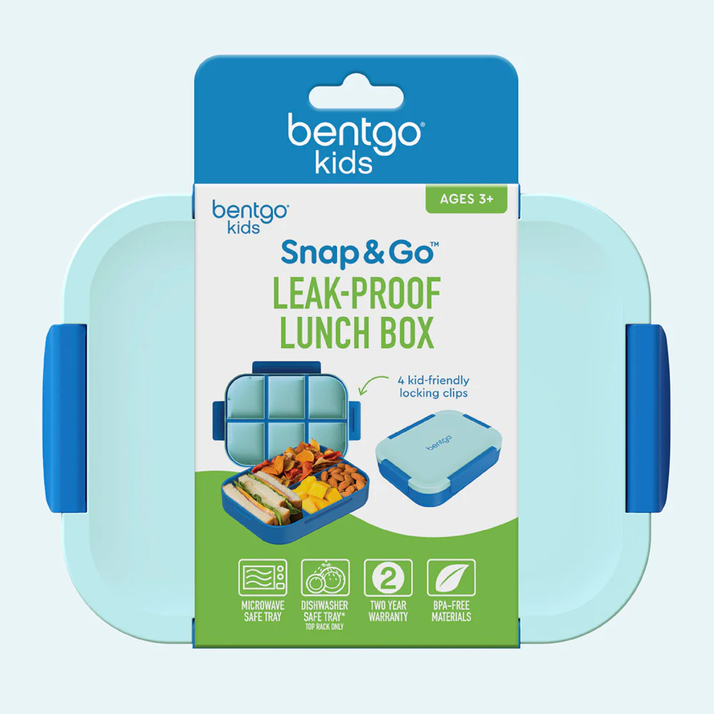 El modelo Snap & Go combina nuestra emblemática bandeja estilo bento con una tapa de cierre rápido, ideal para niños a partir de los 3 años que buscan independencia y estilo en sus comidas.