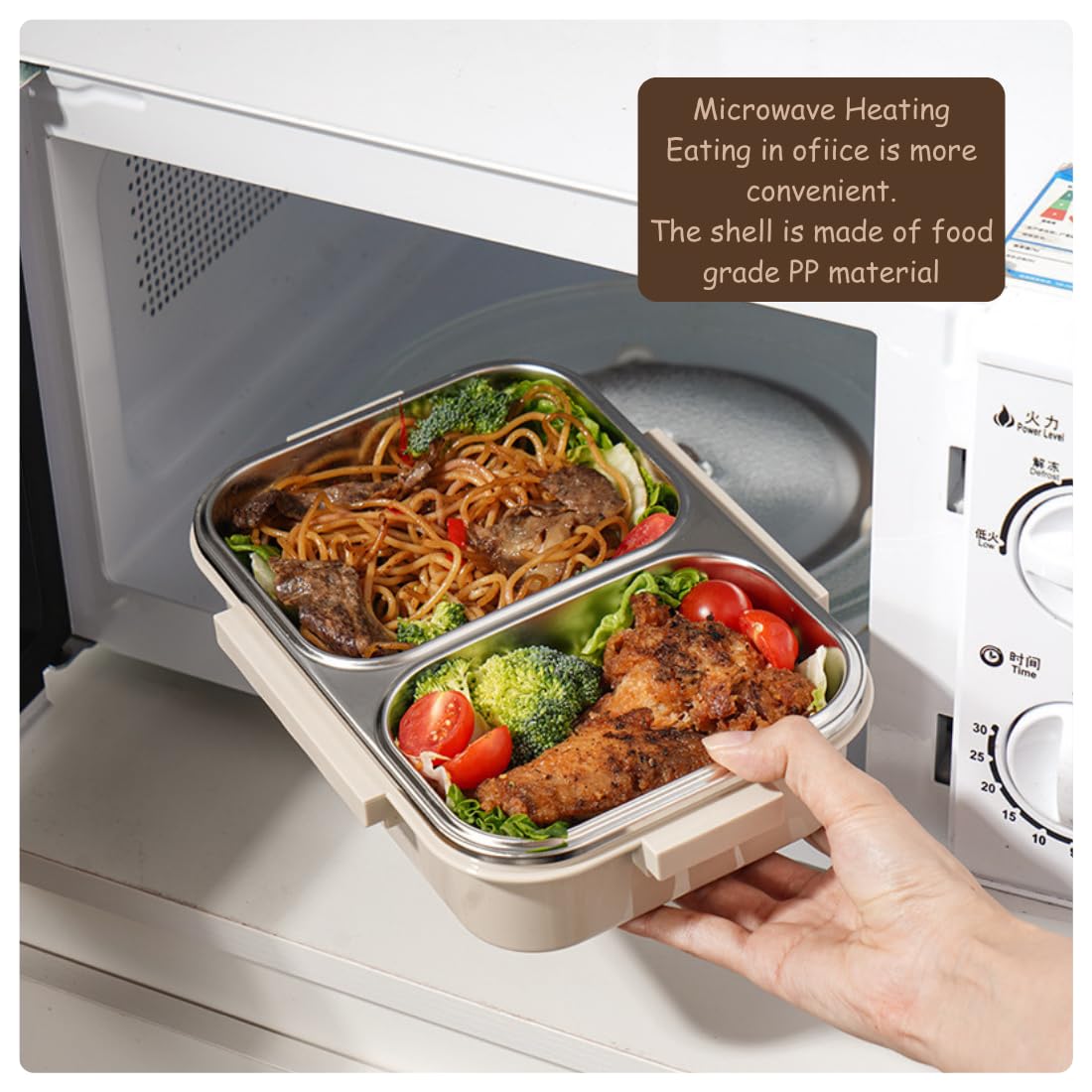 Lonchera Nude Beige, 2 compartimientos, acero inoxidable 304