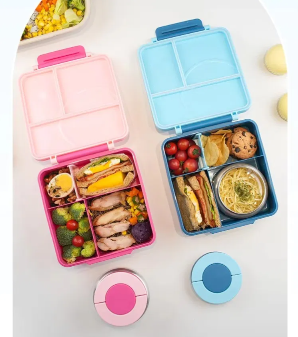 Contiene 4 compartimentos que permiten una separación absoluta de texturas y sabores. Esto garantiza que los snacks secos se mantengan crujientes y las frutas frescas, eliminando la contaminación cruzada de olores gracias a sus sellos de presión individual.