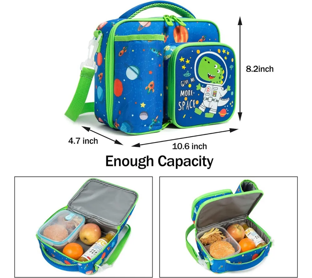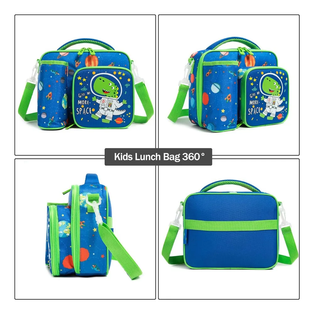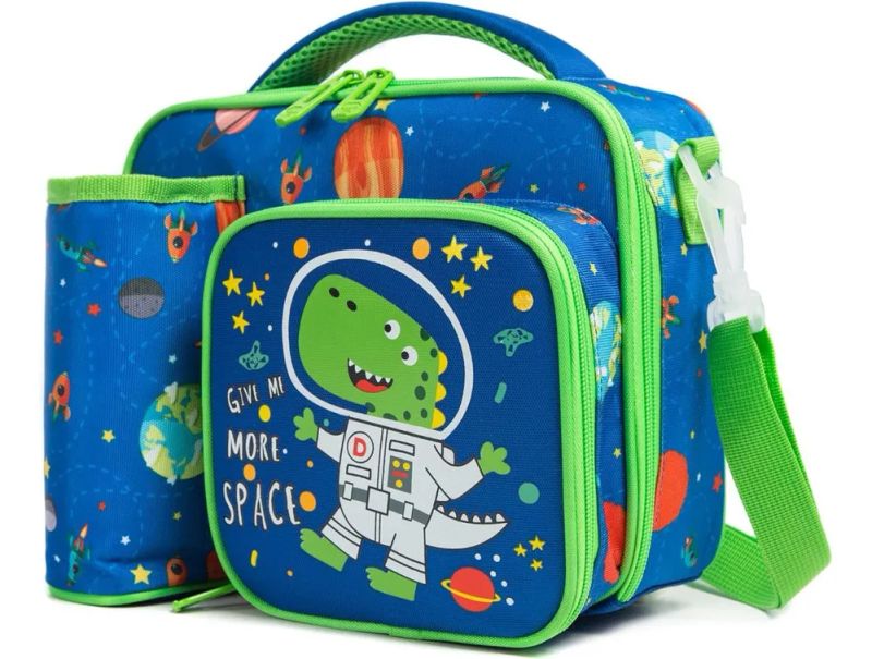 ¡Lleva el almuerzo de tu pequeño a otra galaxia! Esta lonchera combina los dos temas favoritos de los niños: ¡Dinosaurios y el Espacio! Diseñada para pequeños exploradores a partir de los 4 años.