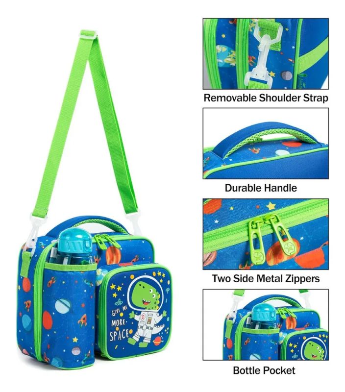 Fabricada con tela Oxford impermeable de alta calidad que no se rasga ni se maltrata, ideal para niños activos que llevan su lonchera a todas partes.