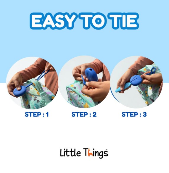 Este set ligero y compacto incluye una funda de silicona flexible con un lazo integrado para sujetarlo fácilmente a loncheras, mochilas o bolsas de pañales. ¡Siempre a mano y nunca perdidos!
