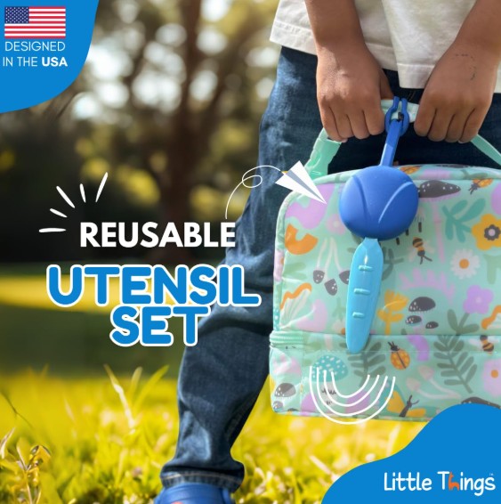 • Acceso rápido: El estuche flexible permite que los niños saquen el tenedor y la cuchara fácilmente a través de la ranura frontal.