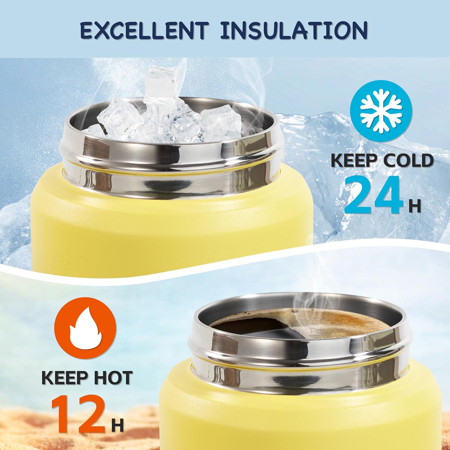 • Máximo Aislamiento: Mantiene los líquidos fríos hasta por 24 horas y calientes durante 4 horas.
